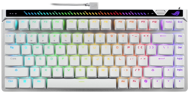 在深入了解ROG HFX V2X轴的特性之后,让我们一同回顾下这款磁轴键盘的整体情况。ROG魔导士ACE 75 HE V2X磁轴键盘延续了原版的紧凑式75%配列方式,大幅降低了桌面空间的占用,让玩家能够拥有更加整洁、舒适的游戏环境。还配备了ROG PBT双色注塑键帽,不仅耐用,而且触感细腻。此外,该键盘内部采用了六层消音结构,能够有效吸收震动与空腔音,使得敲击声效更加柔和纯净。