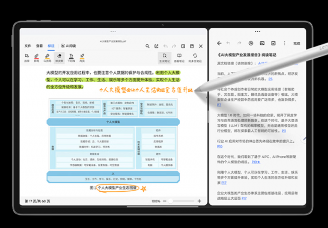 在AI能力方面,小新Pro GT 13行业首发支持端侧一键部署OpenClaw,无需联网即可本地运行大模型,响应更快、隐私更安全。针对大学生群体,产品特别定制了课堂笔记智能整理功能,可自动识别手写批注、融合图文内容,联动AI妙记与智慧文档,一键生成结构化知识笔记,真正让AI深度融入学习场景。