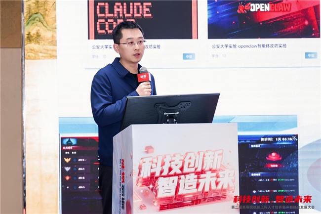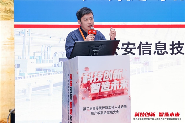 新道科技股份有限公司服务业务部总经理任永程发表《AI赋能的新一代信息技术专业建设探索》主题报告。他指出,在“十五五”科技发展的战略指引下,AI与公安工作发展愈发呈现融合趋势,人才培养需紧跟时代构建递进式能力培养体系。新道科技通过打造公安AI通识课程体系,落地真实警务场景的多款实战模型,创新双轨教学模式,构建了“五数一体”数据警务人才培养体系。为推动成果落地,新道科技以多维举措深化产教融合,为智慧警务人才培养提供了专业解决方案与实践范式,助力数智化警务人才培养迈上新台阶。
