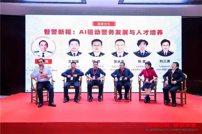 在中国刑事警察学院公安信息技术与情报学院原院长秦玉海的主持下,论坛还举办了“智警新程:AI驱动警务发展与人才培养”主题圆桌会议。中国人民警察大学智慧警务学院副院长张永平、南京警察学院信息技术学院院长王新猛、山西警察学院网络安全保卫系主任刘三满、广东警官学院网络安全学院院长杜威和云南警官学院信息网络安全学院副院长陈昱受邀参与研讨,围绕人工智能和数据警务的实战化应用、数据警务人才需求、数据警务技术专业建设、课程建设扎实落地和人才培养模式创新等议题各抒己见,以专业视角和丰富实践,解读智慧警务人才培养的关键问题,共同探索AI与公安领域教育融合发展的实践方向。
