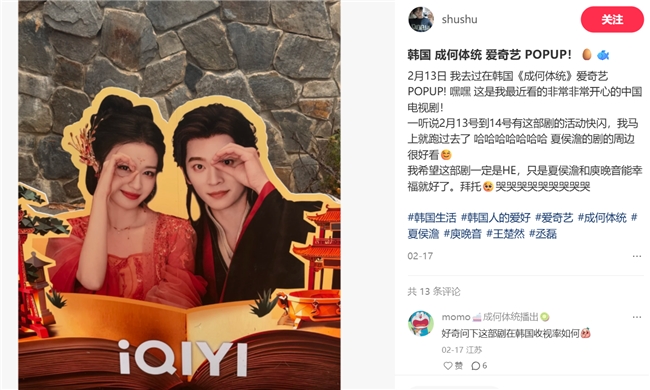 近年来,丞磊凭借扎实的演技与优质作品,在海外积累了超高人气。由其领衔主演的《成何体统》成为2026开年火爆全球的华语剧集之一:该剧自2月6日开播以来,连续7周跻身爱奇艺国际版全球热播华语剧集周榜TOP10,并蝉联4周榜单冠军。剧中丞磊饰演“穿书暴君”夏侯澹,他凭借极具反差的演技圈粉无数。有海外观众评价道:“他既可爱又讨喜,既风趣又傻气,既酷炫又性感,具备全面的魅力特质。”同时,该剧凭借脑洞大开的剧情、鲜活立体的人设与极具东方美学的服化道设计,让海外观众充分感受到华语古装剧的独特魅力,且纷纷追至线下,参与爱奇艺国际版在当地推出的推广活动并合影打卡。