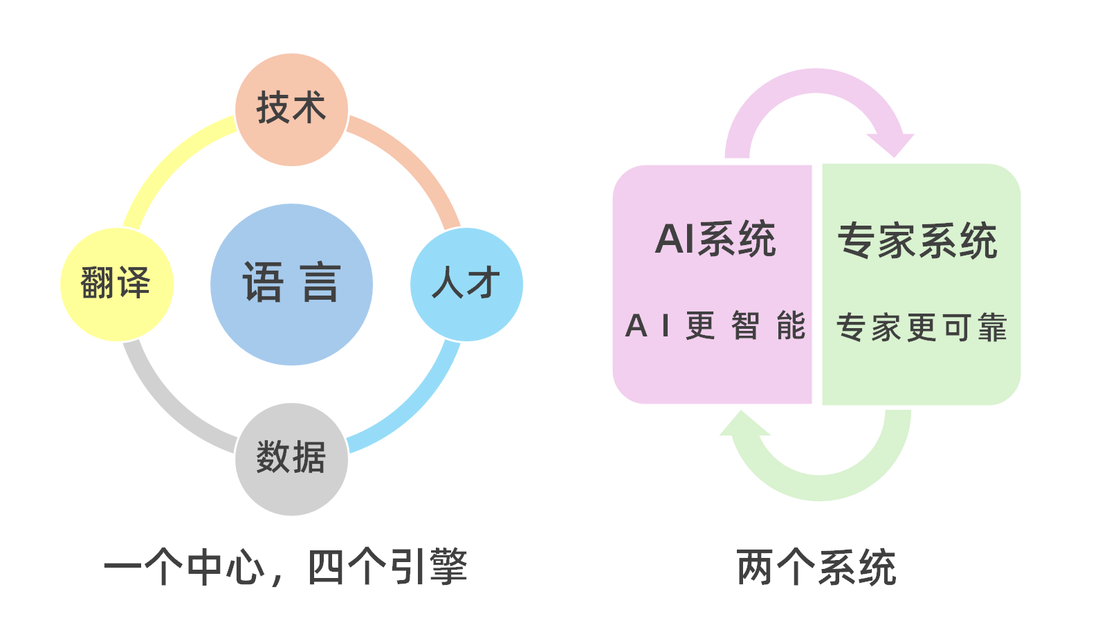 首先,我们正突破传统语言服务边界,通过技术重构产业价值链,逐步构建起以语言为中心,以“技术、数据、翻译和人才”为四大引擎的智能生态,打造“AI系统+专家系统”深度协同的运作模式,践行“人工智能+”的战略,通过技术输出赋能中小企业,推动行业整体效率提升,这也与国家“抢占人工智能产业应用制高点”的要求高度契合。