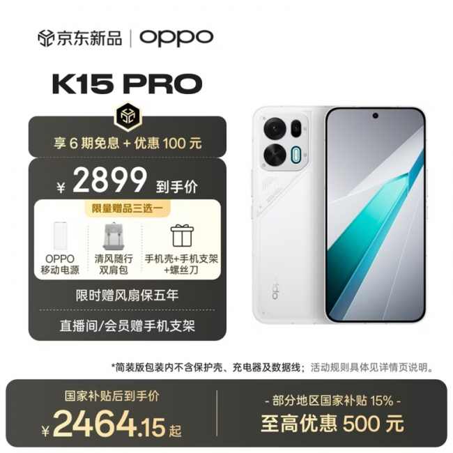 4月1日,OPPO K15 Pro、OPPO K15 Pro+正式发布,国补后分别为2464元起、2634元起,4月3日10点正式开售。为带给消费者更多权益,京东携手OPPO打造先人一步加速换新计划,提供限量新品现货优先发货,最快发布会当日送达。先人一步下单OPPO K15 Pro可享限量赠一年延保、一年全保修权益。目前,两款机型已在京东同步预售,购买OPPO K15 Pro享6期免息、直降100元、90天只换不修、以旧换新至高补贴500元以及OPPO 20W、清风随行双肩包、手机壳+手机支架+螺丝刀三选一权益;购买OPPO K15 Pro+享12期免息、直降400元、以旧换新至高补贴500元、OPPO 20W、清风随行双肩包二选一权益。