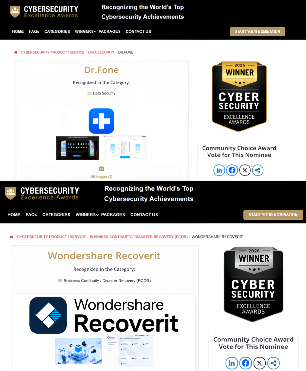 (万兴科技旗下Wondershare Dr.Fone和Wondershare Recoverit斩获网络安全卓越奖金、银奖)