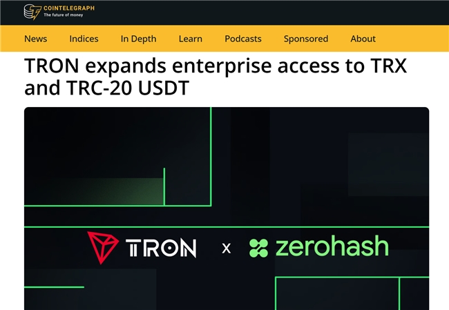 近日,据Cointelegraph和Benzinga等海外知名媒体报道,波场 TRON已与领先的加密货币、稳定币及代币化资产基础设施提供商 zerohash 达成合作。此次集成旨在为企业接入波场TRON网络开辟更便捷的通道。在特定司法管辖区内,各类企业均可通过 zerohash 平台直接获取波场TRON网络原生功能型代币 TRX 及 TRC-20 USDT,并利用波场TRON网络进行资金托管、代币交易、流动性管理与结算。同时,本次合作还为加密交易所、新兴数字银行及金融科技公司构建了更为高效、合规的的法币入金通道。