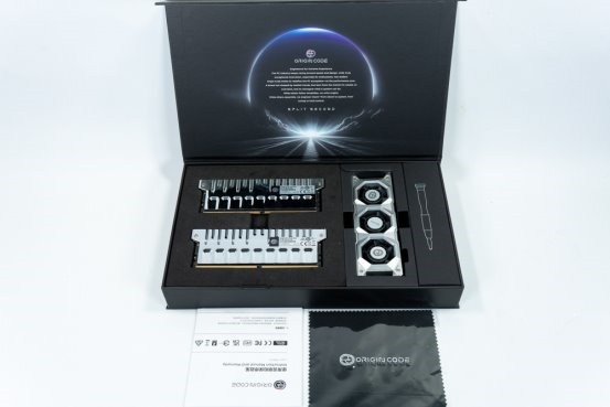 ORIGIN CODE 从包装设计之初便明确传达出其高端产品定位。包装正面采用简洁流畅的极简设计风格,以品牌元素为核心,信息呈现相对克制。翻至背面,则可见常规的产品信息,包括质保说明及规格参数等。虽然包装上未标注灯效兼容认证标识,但据了解,该产品支持主流主板厂商的灯效控制软件,包括 ASUS Aura Sync、GIGABYTE RGB Fusion、MSI Mystic Light Sync 以及 ASRock Polychrome Sync。