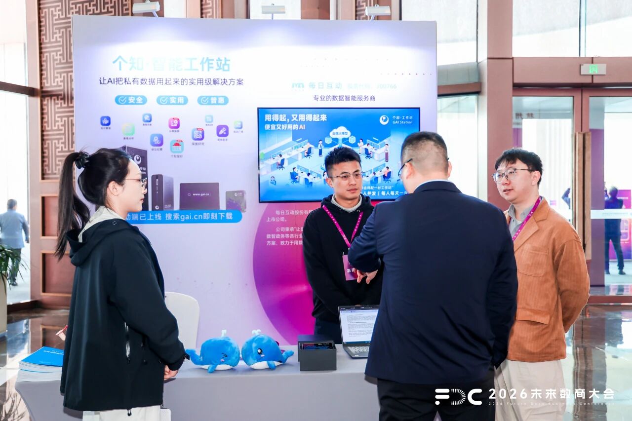 4月2日,2026未来数商大会在杭州未来科技城学术交流中心开幕。未来数商大会致力于打造激活数据要素、释放价值红利的生态盛会,已连续举办三届。本届大会以“数据定义智能”为主题,汇聚了来自全国18个省份的600余位专家学者、行业代表及专业观众,共同探讨人工智能时代数据产业的发展路径。数据智能上市企业每日互动(股票代码:300766)受邀参会,总裁刘宇受邀发表《仝行共创:让AI用得起、用得起来》主题演讲。