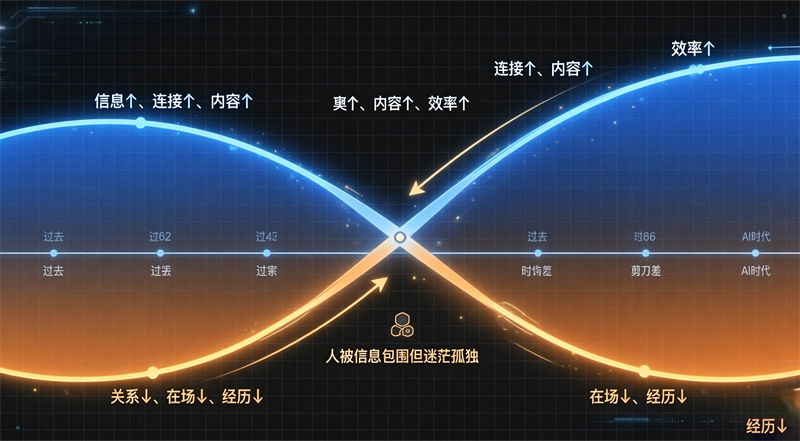 其中一个最关键的问题,就是“人是否正在被不断地从真实中抽离出来”。这种抽离并不是戏剧性的,而是日常化、连续性的。人可以接触越来越多的信息,却越来越难判断什么真正与自己有关;可以和越来越多人保持连接,却越来越少进入真正有重量的关系;可以消费越来越丰富的内容,却越来越少拥有一段会留下关系感、现场感和记忆感的真实经历。也就是说,工具不断增强了人的外部能力,却并没有自动增强人的真实进入能力。甚至在某些时候,它反而会削弱这种能力因为当一切都变得更方便、更快速、更可替代时,人反而更容易被包裹在一个高度系统化却低进入感的环境里。