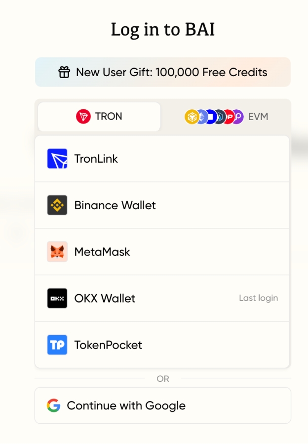 目前,B.AI已支持波场 TRON 以及 BNB Chain、Ethereum等 EVM 网络,用户可通过 TronLink、MetaMask 等钱包登录。