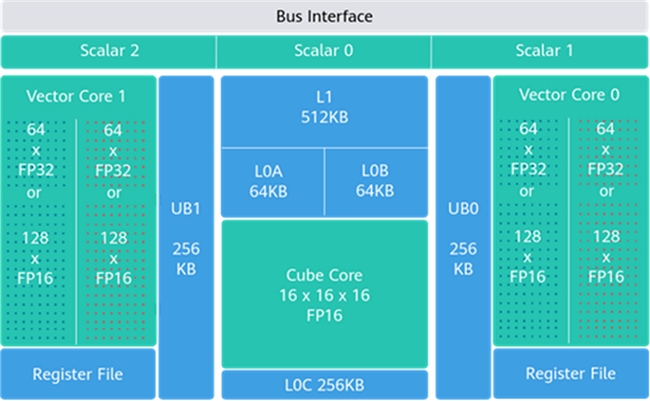 ● AICORE子系统,采用华为自研的第三代Davinci架构,在前代架构基础上,针对当前Transformer为核心,同时兼顾推荐、多模态等多种算法趋势,从低精度算力、计算效率、易用性等方面进行了全面的提升。