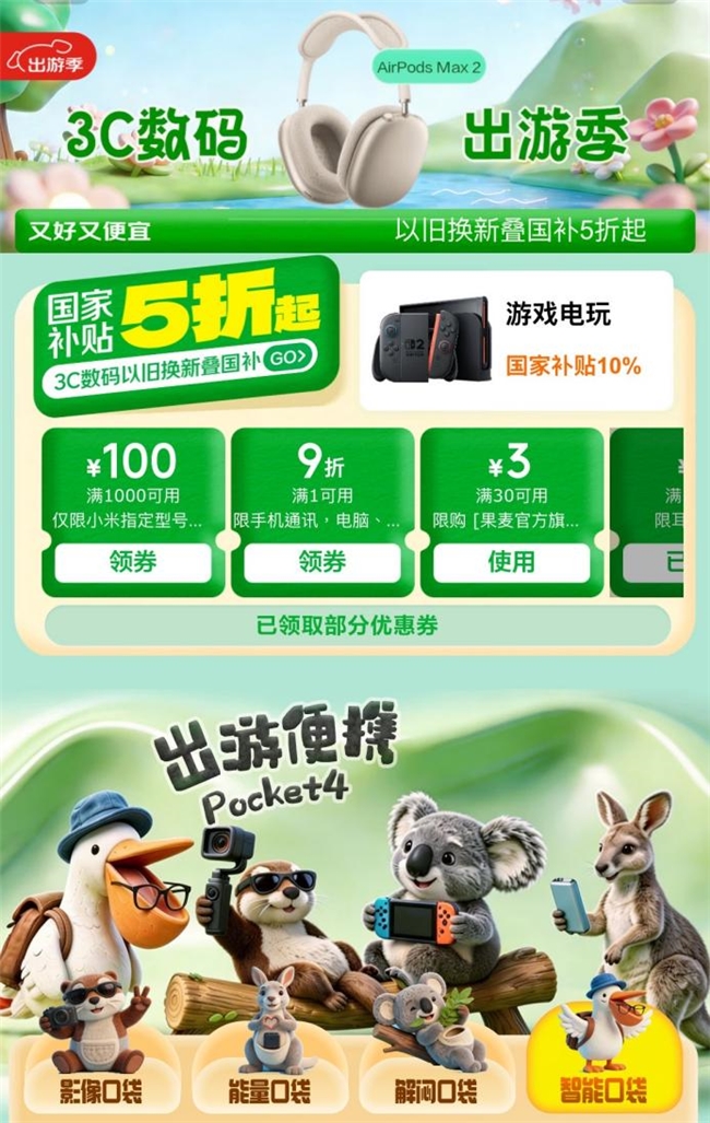 从沉浸式影音体验到流畅休闲娱乐,从稳定网络保障到舒适出行装备,京东3C数码出游季覆盖春日出行全场景需求,以大牌品质、多重福利为消费者打造一站式购物体验。国家补贴、以旧换新等福利叠加,助力消费者轻松焕新出行装备。现在打开京东APP,搜索“3C数码出游季”,选购优质3C数码智能好物,开启惬意舒心的春日旅途。