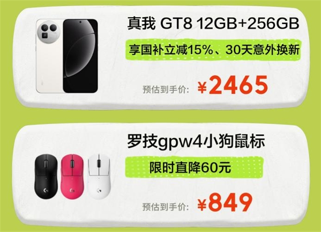除了视听享受,出行间隙中的高性能智能设备与专业外设,也能让休闲娱乐体验再升级。真我GT8搭载强劲性能配置,流畅运行各类大型应用与游戏,画面稳定、操作顺滑,充分满足碎片化娱乐需求,活动期间享国补立减15%,更有30天意外换新服务保驾护航;罗技GPW4代无线游戏鼠标采用了轻量化设计,操控精准、延迟更低,在酒店小憩也能随时开启游戏时光,限时直降60元,为玩家带来更优质的操作体验。