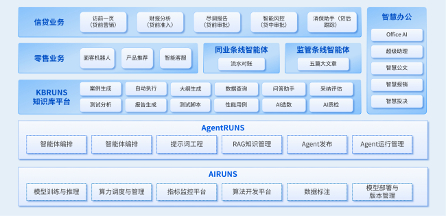 金融科技智能化发展进入深水区,如何将AI技术转化为可落地、可量化的业务价值,成为金融机构关注的核心议题。江苏润和软件股份有限公司(以下简称“润和软件“)基于十余载金融行业深耕经验,构建了覆盖测试、信贷、零售、同业、监管、智慧办公六大领域的20+智能体,在技术适配与安全合规的双轮驱动下,重塑人机协作新范式。
