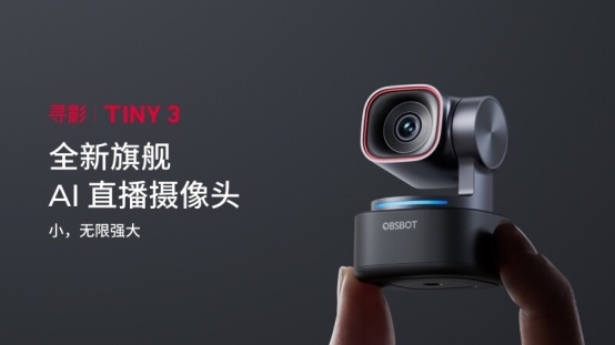 (2026 年 4 月 9 日,中国深圳)全球智能影像品牌 OBSBOT 寻影,今日正式发布全新旗舰 AI 直播摄像头寻影 Tiny 3。作为一台能装进口袋的全能直播神器,寻影 Tiny 3 在仅 63g 的轻巧机身内,集成了 1/1.28'' 超大 CMOS 、4K 超清画质、AI 智能跟踪 2.0 与专业音频系统,并支持直连手机,让你能随时随地开启专业直播。这使旗舰影像实力得以真正随身携带,为创作者提供即取即用的专业解决方案,显著降低高质量创作门槛,让专业直播与会议不再受场景限制。