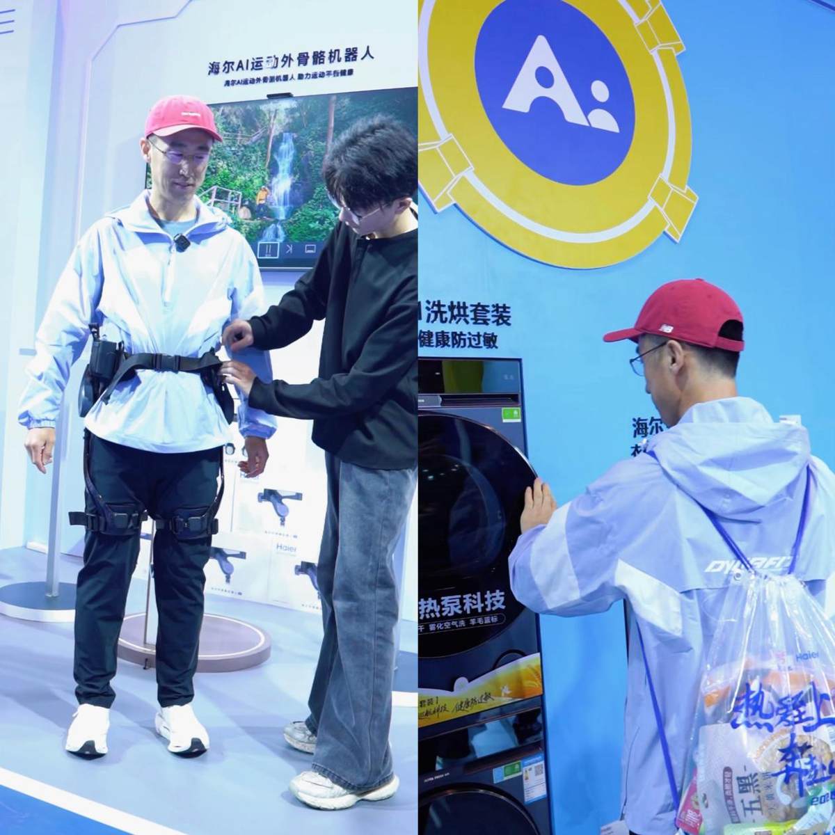 最先让他感慨的,是赛事AI元素变得越来越丰富了,体验感也越来越好。像AI客厅里的AI教练能帮助他做好赛前热身,AI厨房里他可以安心享用美食,还体验了AI运动外骨骼机器人让跑步更轻松等等。