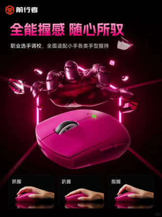 轻量化设计是E11系列的另一大亮点,整机重量仅65g,兼顾性能与重量的黄金配比,长时间握持无负担。其模具经职业选手调校,全面适配中小手型的抓握、趴握、指握三种握持方式,引导加长按键设计更贴合手指发力习惯,微操得心应手。表面覆盖细腻冰肤涂层,触感亲肤干爽,有效抵抗手汗与油污,长时间使用依旧舒适。
