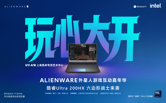 2026年4月17日至18日,Alienware外星人重磅打造的“玩心大开”游戏互动嘉年华,于上海西岸穹顶艺术中心热血启幕。这场集结全生态硬件体验、高水准电竞赛事、多元游戏IP联展与潮流文化互动的沉浸式盛会,精准锁定新世代玩家喜好,打造春日专属电竞狂欢主场,让硬核科技与游戏热爱双向碰撞。