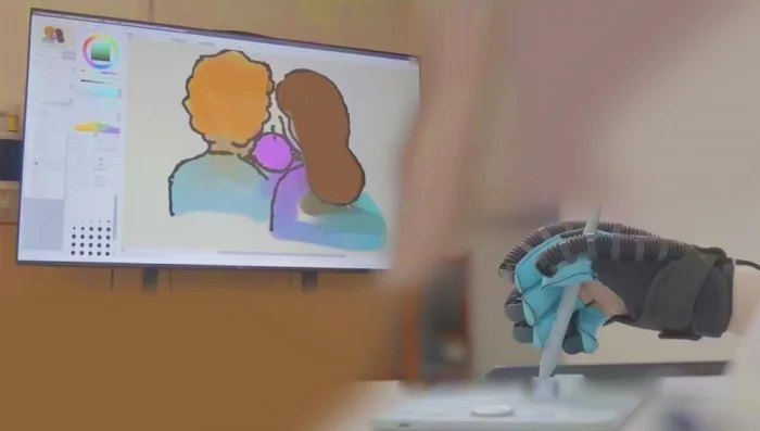 脑虎科技第二例“三全”脑机接口患者脑控外骨骼握笔绘制全家福