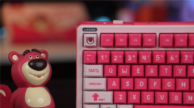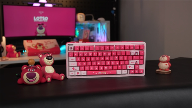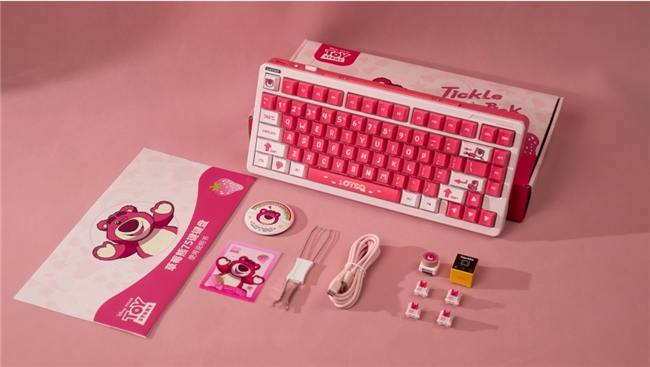 iLovbee B75 草莓熊为迪士尼正版授权,是品牌首款迪士尼联名系列作品。键盘采用独家原创草莓熊主题设计,历经多轮打样迭代,配色饱满贴合正版迪士尼草莓熊IP形象、外观细节处理恰到好处,同时背板设计图案经过多次调研优化,完美呼应键盘正面草莓熊可爱软萌的形象,保持键盘整体一致的美观以及辨识度,使其不止是一把输入工具,更是值得玩家收藏的外设佳品。