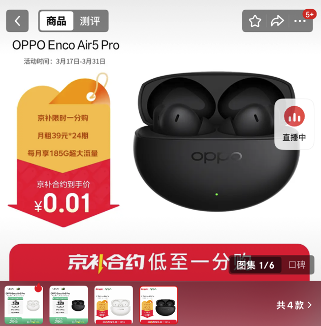 除了手机,热门新品OPPO Enco Air5 Pro真无线降噪耳机,原价329元,现在参与“京补合约”活动,办理39元×24期套餐,仅需0.01元即可入手,每月还可享185G超大流量,这款耳机支持55dB深度主动降噪、LHDC 5.0高清音频传输、54小时超长续航及AI通话降噪,兼顾音质、舒适与智能体验,是当前TWS耳机中的高性价比之选。