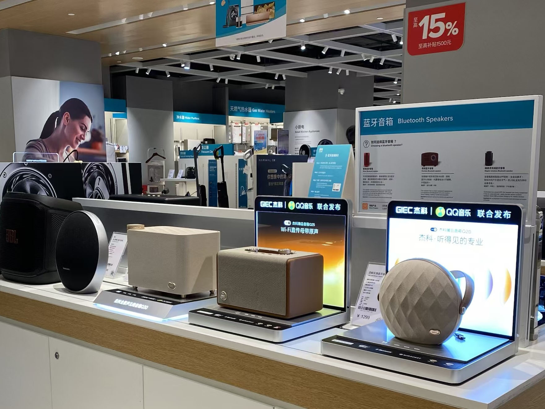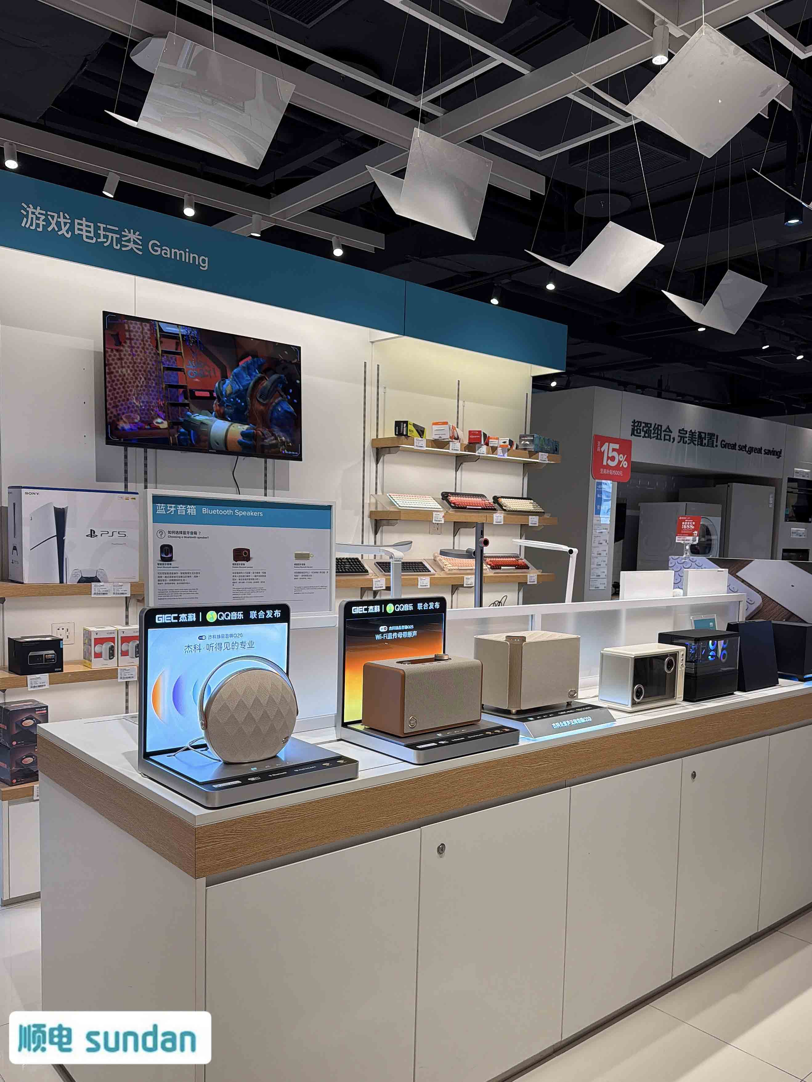 2. 场景化体验:顺电的客厅影音区、客吉莱的旅行数码区、免税店的高端礼品区,分别与Q30的家庭影院场景、Q20的户外便携场景、全系列的礼赠场景高度契合,让产品卖点从参数变为可感知的真实体验。