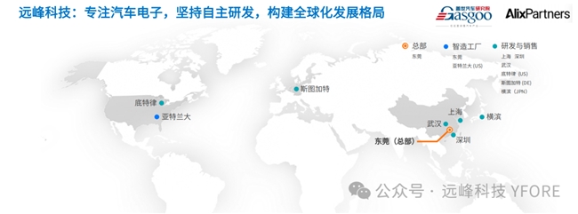 围绕智能进入、智能镜像、智能空间三大核心业务,远峰科技已搭建起全球化研产销一体化体系,在中国东莞、美国亚特兰大布局生产基地,并于美国底特律、德国斯图加特、日本横滨等地设立海外研发与营销中心,服务网络覆盖亚洲、欧洲、北美全球核心市场。