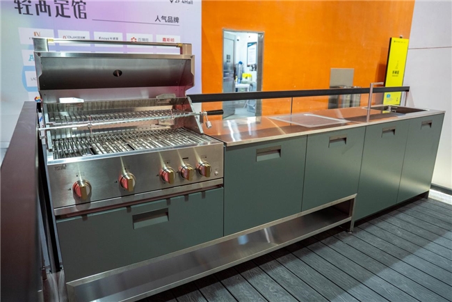 既然是户外厨房,烧烤功能必须强大。“旷境系列”自带的全不锈钢烧烤炉,堪称专业级。它有5个独立控温的炉头,聚会人多也不怕手忙脚乱,太懂中国人了!