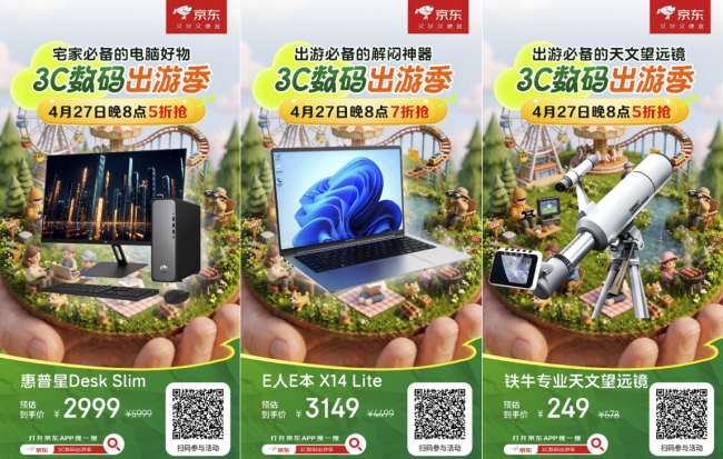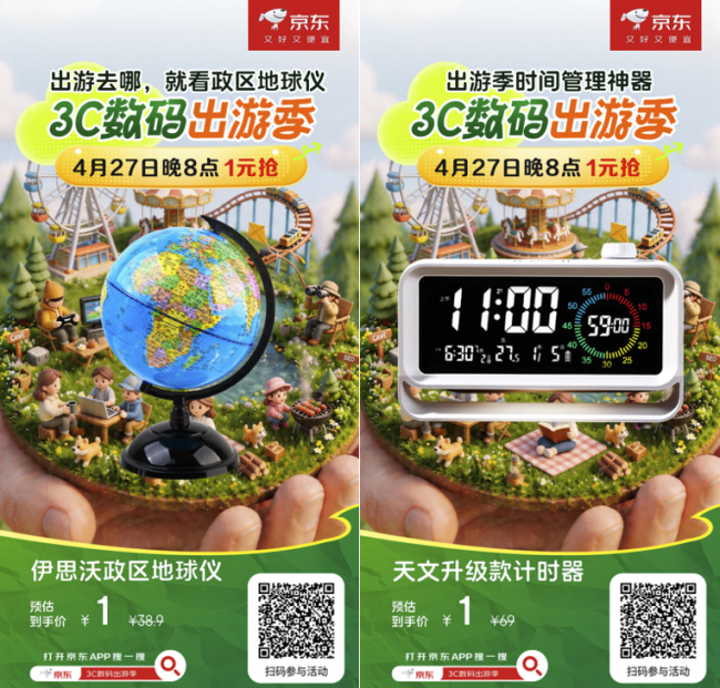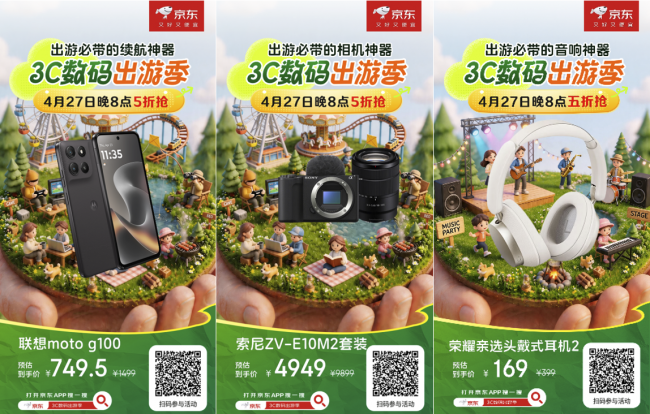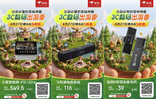 4月27日晚8点,打开京东APP搜索“3C数码出游季”,定好闹钟,提前加购,五一出游装备,一站配齐不费心。