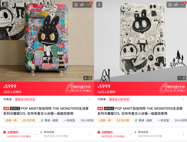 京东重磅新品泡泡玛特The Monsters生活家系列冷藏箱(下文统称:LABUBU冰箱)自4月24日上线京东后,立即引发全球粉丝关注。截至4月28日9点,京东全球率先发售的Home款预约人数已超过1.8万人,京东同步发售的House of the Monsters款预约人数也已超过1.6万人,足以见得泡泡玛特顶流IP的强大市场号召力。