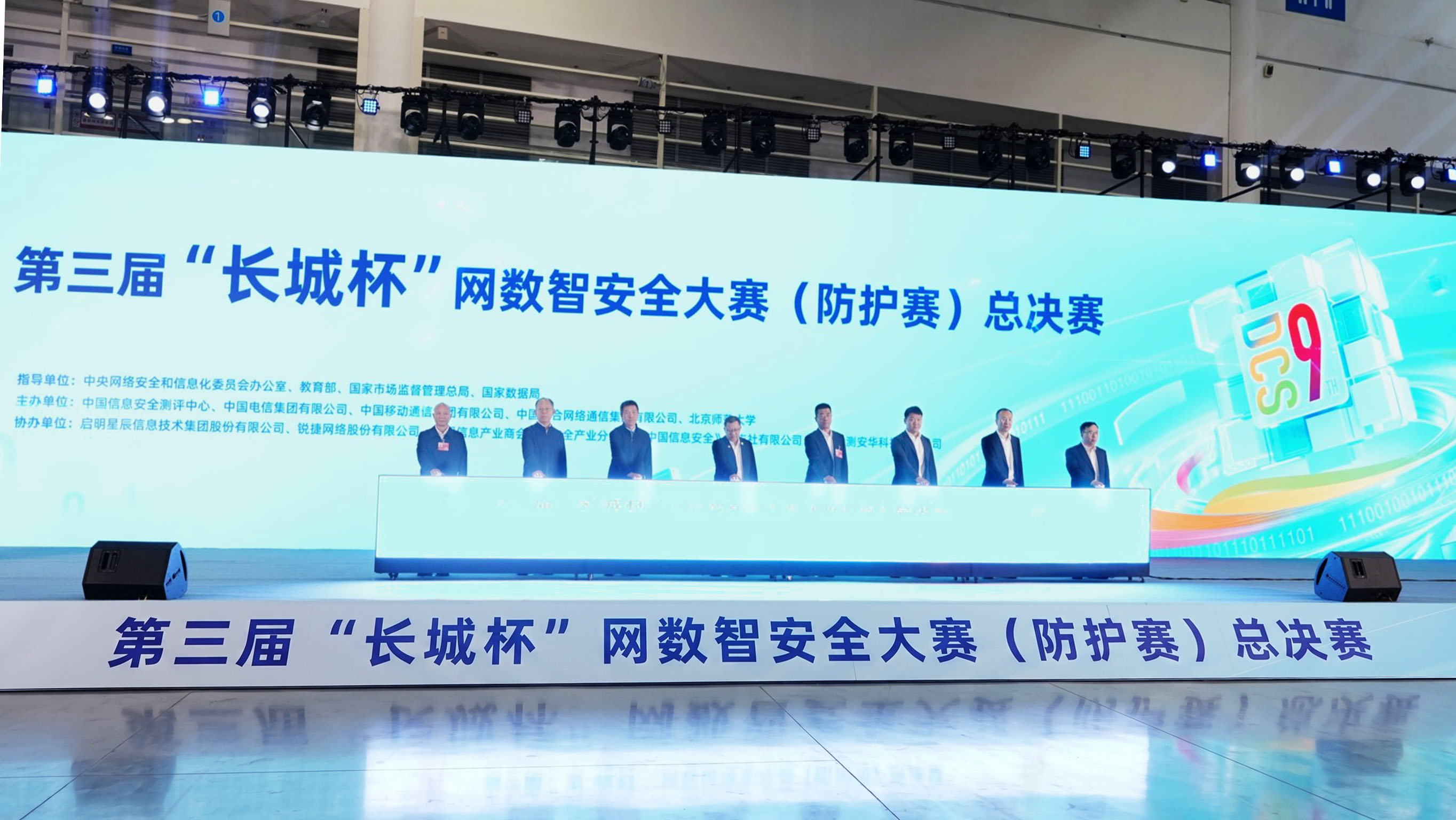 4月28日,第三届“长城杯”网数智安全大赛(防护赛)总决赛在福建福州隆重举行。本届大赛由中央网络安全和信息化委员会办公室、教育部、国家市场监督管理总局、国家数据局共同指导,中国信息安全测评中心、中国电信、中国移动、中国联通、北京师范大学联合主办。第十二届全国政协副主席、国家电子政务专家委员会主任王钦敏,教育部高等学校网络空间安全专业教学指导委员会主任方滨兴院士,中国信息安全测评中心主任彭涛、河北雄安新区管理委员会党工委委员、管委会副主任梅新阳,中国电信集团有限公司网络和信息安全管理部总经理谷红勋、中国移动通信集团有限公司网络与信息安全管理部总经理赵刚、中国联合网络通信集团有限公司网络与信息安全部副总经理谢攀等重要嘉宾出席本届大赛,共同见证“长城杯”总决赛的盛大启幕。