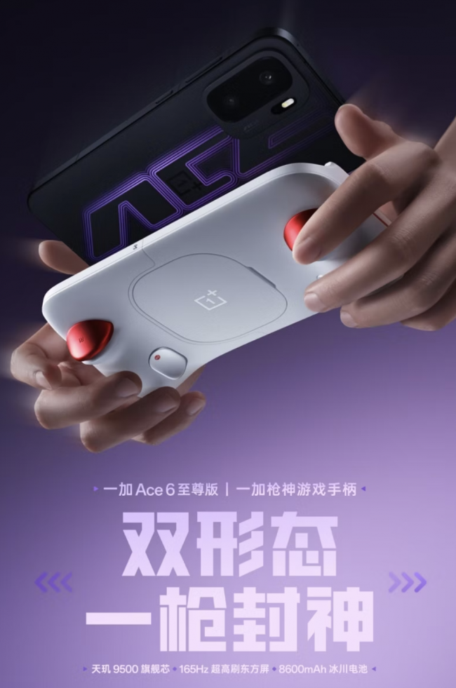 此外,一加Ace 6至尊版还搭载了最新的ColorOS 16系统,配合电竞网络芯G2 Pro和主机级陀螺仪,有效优化网络延迟和体感操控。而且一加枪神游戏手柄与一加Ace 6至尊版还能组成双形态枪神,行业首创手机+掌机握持形态,无“摇杆”设计专为原生手游玩家打造。再加上手游原生四键、触控的融合操控系统,能够实现多指协同操控,让玩家秒变高手。