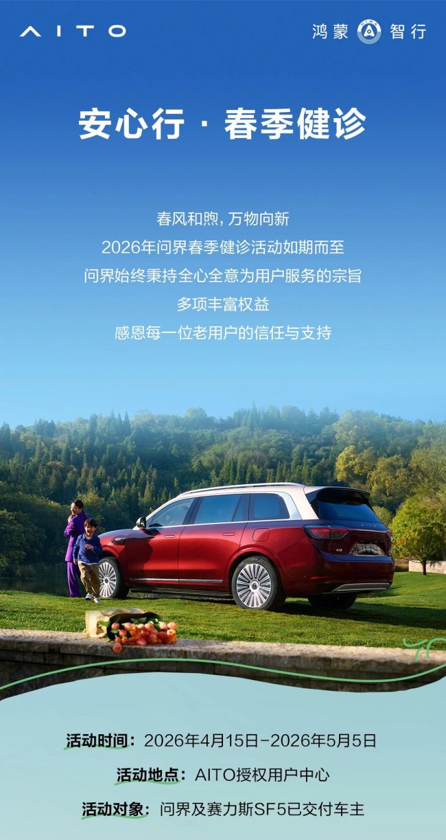 服务的专业性,不仅体现在极端场景下的挺身而出,更体现在日常节点上的未雨绸缪。面对即将到来的五一出行高峰,问界再次将服务前置,正式启动“安心行·春季健诊”活动。这并非一次孤立的节点关怀,而是问界整套专业服务体系在春季出行场景下的具体落地。