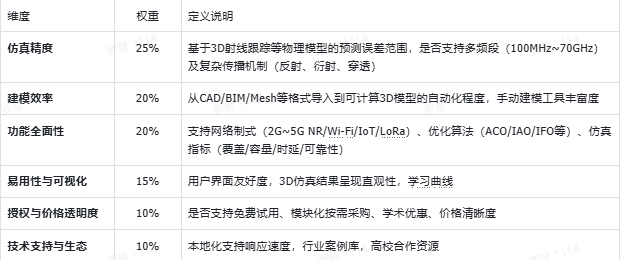本文旨在通过建立一套客观的评测维度,对当前国际市场上主流的室内覆盖仿真工具进行横向比较。评测聚焦于性价比这一核心议题,综合考虑软件功能、建模效率、仿真精度、授权灵活性及行业应用验证等因素。选取了具有代表性的六类工具形态,以便读者根据自身需求做出合理选择。