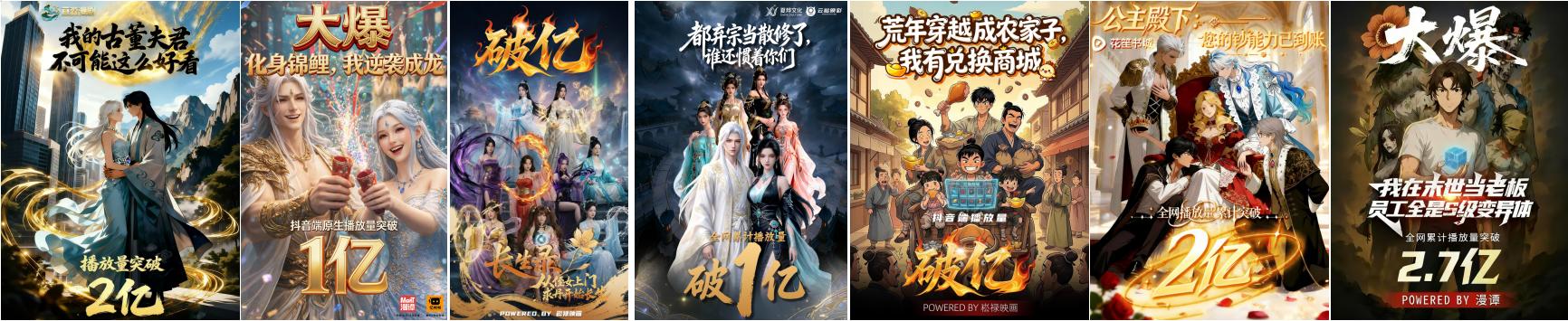 上线一年半,非沙雕品类热门AI剧超70%的市占率;在去年10月率先创造了可以制造爆款的agent,一个3人团队,15天可以完成一部80集AI漫剧;代表作品25年占年度漫剧榜单近50%,其中《我的古董夫君,不可能这么好看》抖音单平台2.5亿播放。现在更是可以成为一款一人一天可完成一部剧的高质量效率工具。